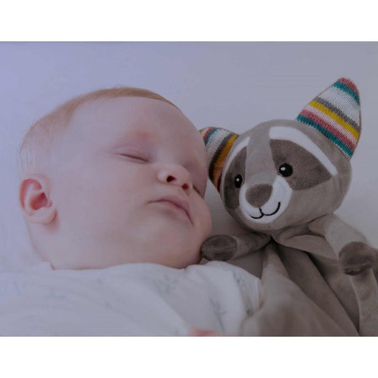 Peluche manta Robin el mapache con porta chupete y ruido blanco - Zazu
